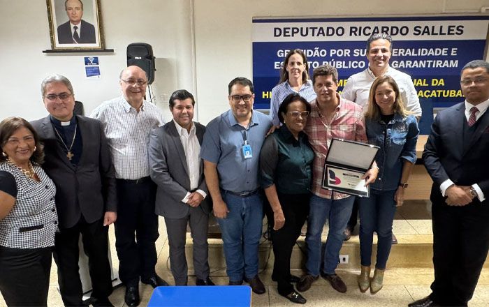 A diretoria executiva da Santa Casa de Araçatuba homenageou ontem (25) o deputado federal Ricardo Salles (Novo), autor da maior emenda parlamentar da história do hospital, de R$ 15 milhões, aporte que possibilitará a aquisição de 286 itens, dentre equipamentos e instrumentos, para a renovação do parque tecnológico de 17 setores essenciais do hospital. O edital de licitação já se encontra concluído. No prazo de 60 dias, todos os equipamentos estarão em fase de entrega.