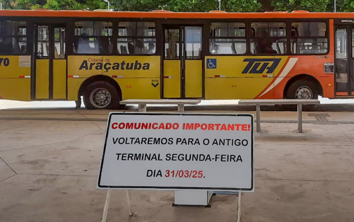 A Prefeitura de Araçatuba informa que, a partir de segunda-feira (31), o Terminal Rodoviário Urbano “Nelson Reis Alves” voltará a funcionar no seu endereço anterior, entre as ruas Tupi e Olavo Bilac, ao lado da antiga plataforma ferroviária.