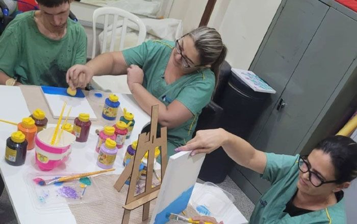 Mostra apresenta quadros, luminárias e vasos produzidos por usuários do Hospital Neurológico e CER IV durante a Semana Nacional da Pessoa com Deficiência Intelectual e Múltipla