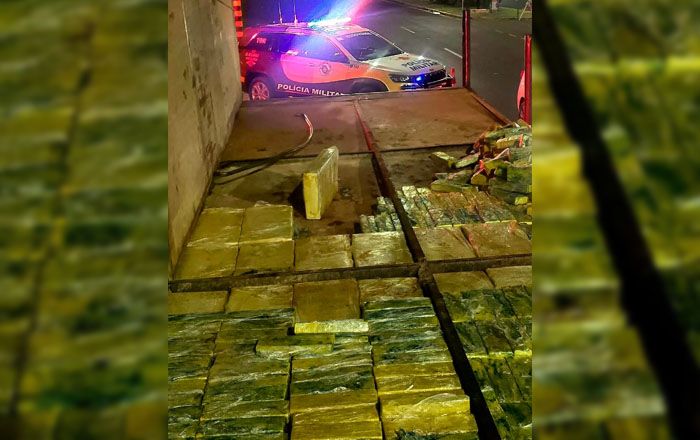 Maconha estava em fundo falso de carroceria de carreta; motorista foi preso em flagrante