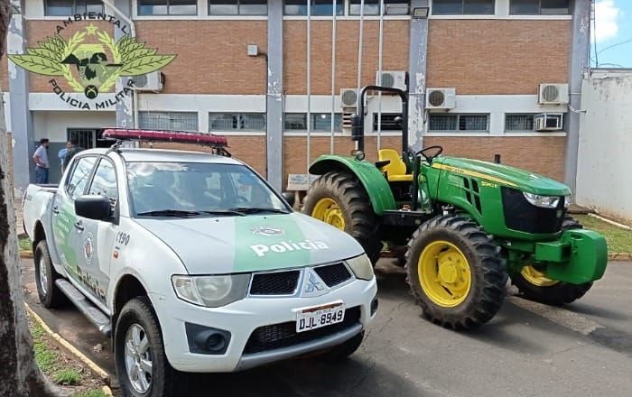 POLÍCIA AMBIENTAL RECUPERA TRATOR FURTADO DE PROPRIEDADE RURAL
