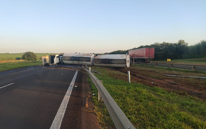 Condutor não se feriu; trecho precisou ser interditado devido ao vazamento de combustível