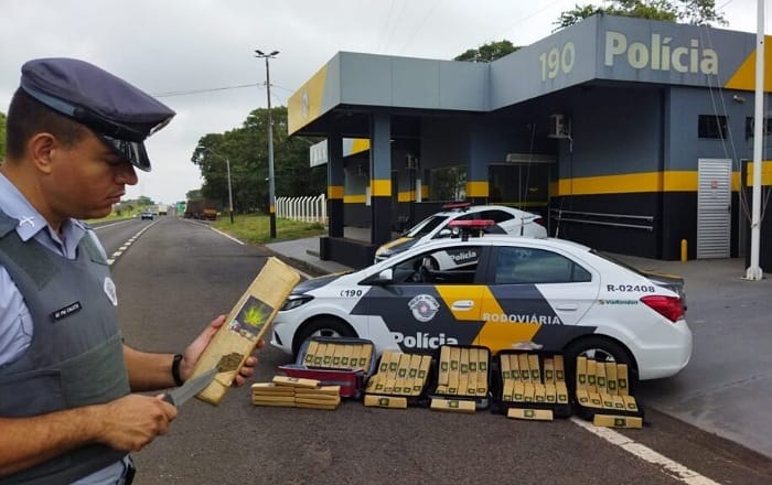 POLÍCIA RODOVIÁRIA PRENDE CASAL COM 70 TIJOLOS DE MACONHA EM MALAS