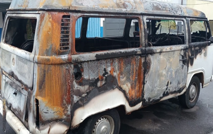 KOMBI PEGA FOGO E FICA COMPLETAMENTE DESTRUÍDA