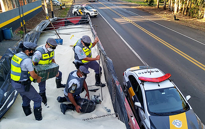 Caminhão carregado de pedra levava droga em fundo falso; destino seria a cidade de Botucatu