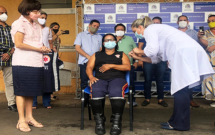 AUXILIAR DE ENFERMAGEM DO SAMU DE ARAÇATUBA É A 1ª A RECEBER VACINA
