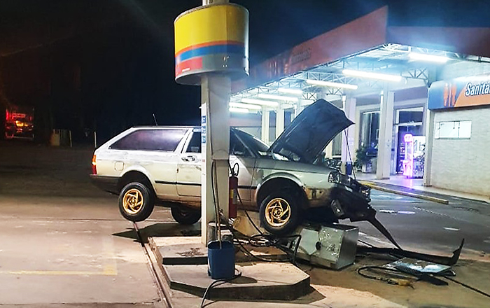 Autor de crime foi preso, mas chegou a fugir e jogar carro contra bomba de posto de combustível