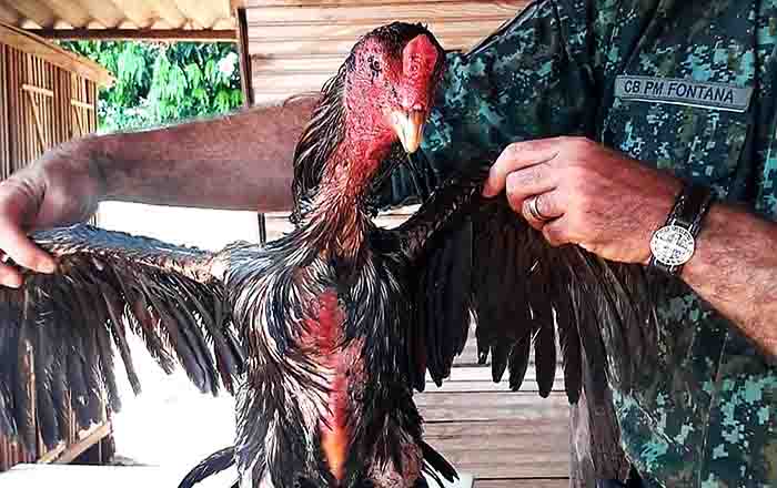 POLÍCIA AMBIENTAL FLAGRA RINHA DE GALOS E APLICA R$ 320 EM MULTAS
