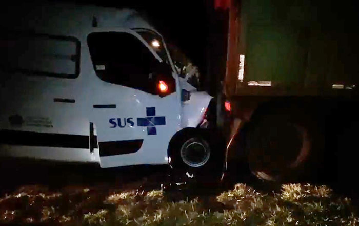 AMBULÂNCIA DE SANTÓPOLIS DO AGUAPEI BATE EM TRASEIRA DE CANAVIEIRO