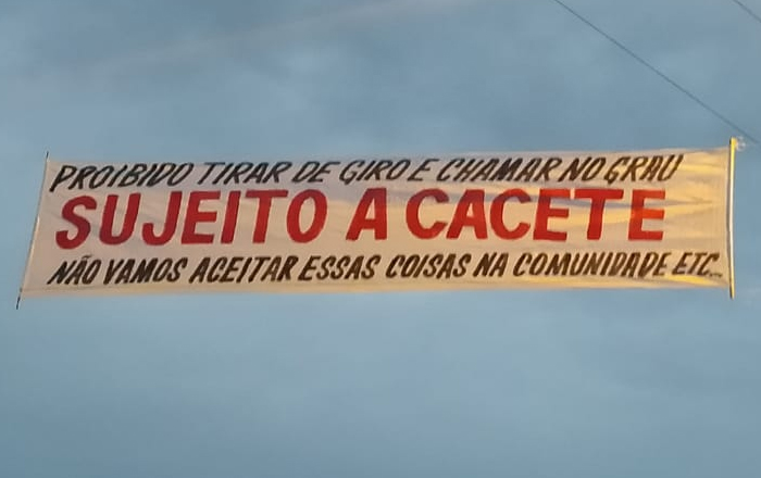 FAIXA AMEAÇA MOTOCICLISTAS QUE FAZEM MANOBRAS: ‘SUJEITO A CACETE’