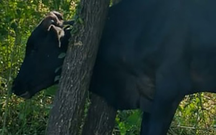 BOMBEIROS DE ILHA SOLTEIRA RESGATAM BOI QUE FICOU PRESO ENTRE ÁRVORES