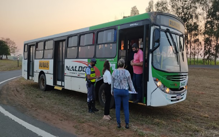 Ônibus com 21 trabalhadores informais foi abordado na operação; PMR encontrou infrações de trânsito