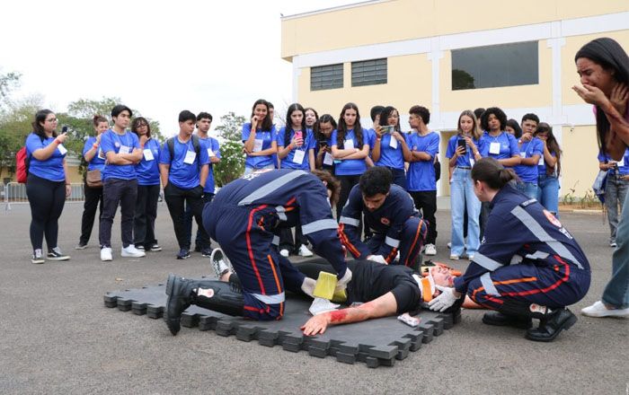 Ao longo do dia, os participantes circularam por cinco estações temáticas — Anatomia e Sutura, Saúde da Mulher, Ortopedia, Trauma (com simulação realística, incluindo uma simulação de queda de avião) e Ligas Acadêmicas — vivenciando atividades teóricas e práticas que os aproximaram do cotidiano de um profissional da saúde.
