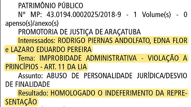 As apurações contra o engenheiro, na esfera administrativa, acabou não resultando em implicações a Andolfato e o caso foi arquivado, com homologação assinada pelo prefeito em 28 de fevereiro deste ano.
