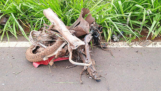 Um ônibus com funcionários do frigorífico Frango Rico trafegava pela rodovia quando em um trevo uma motocicleta Honda Biz, ocupada por duas jovens de 20 e 17 anos de idade, atravessou a pista e foi atingida em cheio.