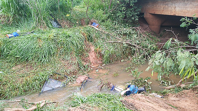 Com a violência da colisão, o condutor do ônibus perdeu o controle e o veículo caiu no córrego Marinheirinho, bem ao lado de uma ponte. O motorista e mais duas mulheres que estavam no veículo morreram com a violência do impacto.