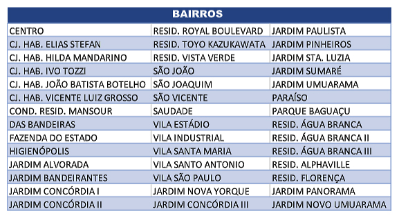 A concessionária juntamente com a Prefeitura de Araçatuba está fazendo um mapeamento detalhado das instituições mais vulneráveis, como hospitais, pronto-socorro, unidades básicas de saúde, asilos e pessoas em situação de vulnerabilidade, que precisem de abastecimento emergencial.