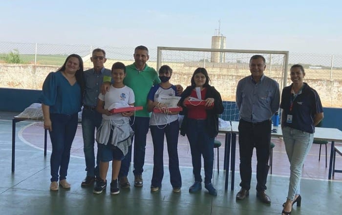Representantes da companhia, professores e o prefeito de Luiziânia, Rogélio Cervigne Barreto, conversaram com as crianças.