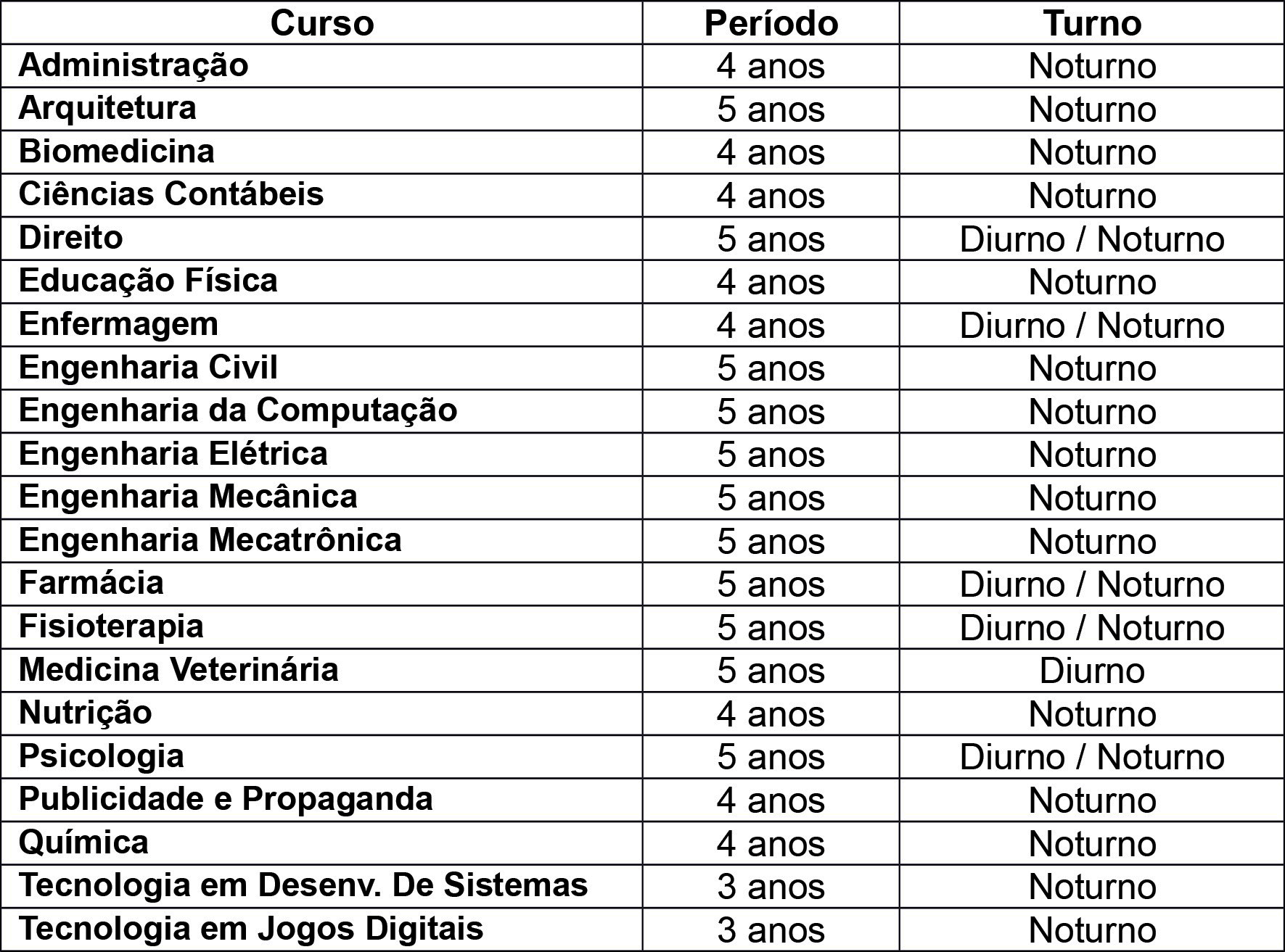Confira a lista dos cursos disponíveis para ingresso via nota do Enem: