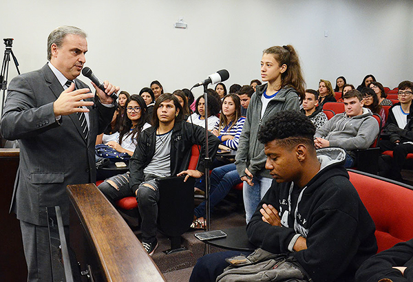 Durante a palestra, o o magistrado explicou as diferenças entre os Poderes Executivo, Judiciário e Legislativo, destacando a importância deste último na elaboração de leis. “Os representantes do Legislativo podem ser trocados pela comunidade por meio do voto. Quem nos representa aqui está por vontade nossa, ou seja, são os eleitores que decidem. Um Legislativo forte pode ser feito a partir das ações dos cidadãos”, afirmou o palestrante.