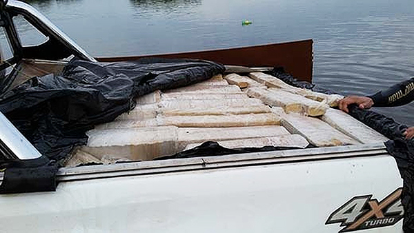 O motorista ainda conseguiu sair do veículo e fugir. A caminhonete ficou submersa e foi retirada do rio com 1,5 tonelada de maconha.