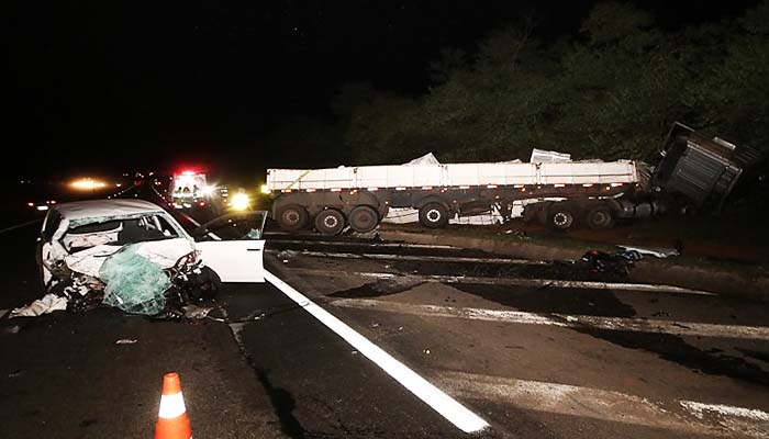 Ele ainda relatou que, no km, colidiu na traseira de um dos reboques atrelados a outro caminhão, com placas de Três Barras (SC), ao tentar desviar de um veículo que estava entre os dois. O motorista acrescentou que o condutor deste automóvel teria freado bruscamente e, com a batida, perdeu o controle, atravessando o canteiro central e invadindo a pista contrária e colidindo nos veículos.