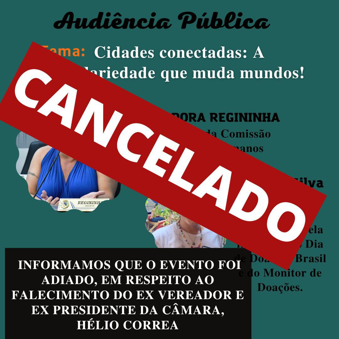 A vereadora que, nesta quinta-feira, havia organizado uma audiência pública alusiva ao Dia de Doar, na Câmara de Araçatuba, optou por adiar a realização do evento em sinal de respeito e luto pela morte do ex-vereador.