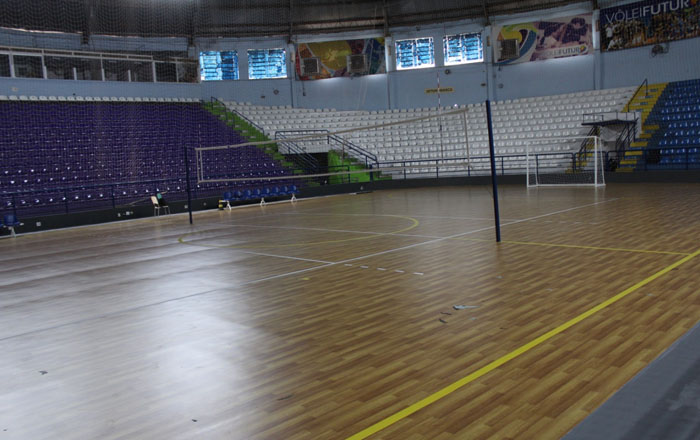 Dentre os serviços realizados no local, foi feita a implantação de piso vinílico, uma escolha essencial para o amortecimento do impacto durante saltos, o que contribui significativamente para a redução de riscos de lesões de atletas, além de ser uma superfície menos escorregadia.