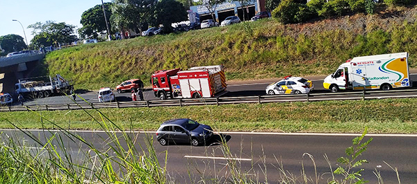 Policiais e bombeiros que atenderam à ocorrência não encontraram documentos com o homem, que bateu com a cabeça no asfalto ao despencar do pontilhão. Ele não chegou a ser atingido por nenhum automóvel que passava pela rodovia.
