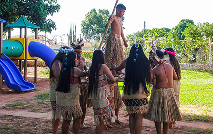 Para os alunos das creches o cacique disse que foram feitas as danças do bate-pau e de apresentação de um novo líder. Os indígenas usaram roupas feitas a partir de materiais rústicos, encontrados na natureza e adereços artesanais confeccionados a partir de sementes e penas de animais.