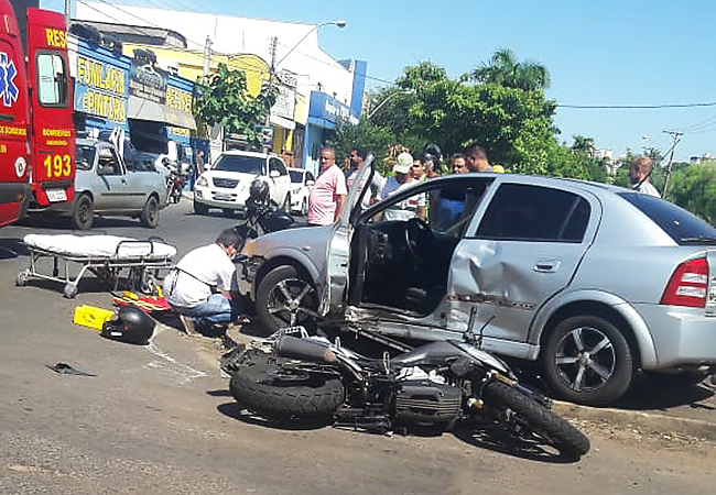 O músico bateu a motocicleta que dirigia na lateral do automóvel, que fazia uma manobra na avenida. Socorrido, ele foi levado para a Santa Casa com fratura no tornozelo e em estado considerado grave.