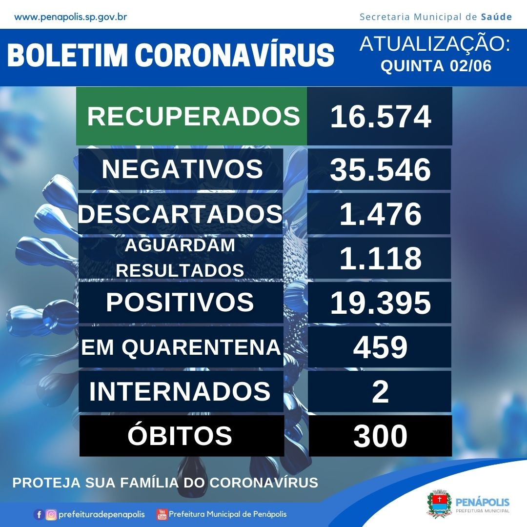 Nesta quinta-feira (2), Penápolis (SP) chegou à marca de 300 moradores que morreram no município em decorrência da covid-19, o novo coronavírus, desde o começo da pandemia. De acordo com o boletim epidemiológico da Secretaria de Saúde, o novo óbito foi registrado no último dia 28, tendo como vítima um idoso de 98 anos.