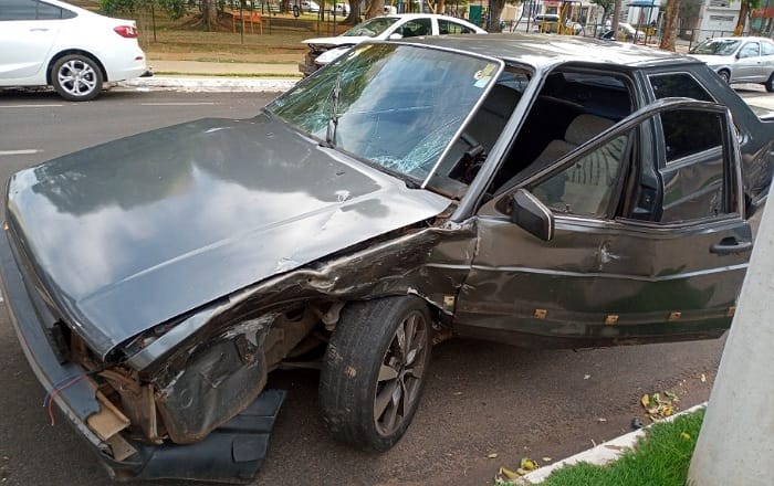 Dois jovens de 18 anos foram presos e um adolescente de 17 anos apreendido, na noite desta terça-feira (23), após roubarem um veículo, no bairro Palmeiras, em Araçatuba (SP). Os três são moradores no bairro Água Branca. Na fuga o trio bateu o carro em um outro veículo e ambos ficaram bem bastante destruídos.