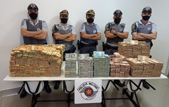 A Polícia Militar Rodoviária apreendeu quase R$ 12 milhões que eram transportados em fundo falso, numa carreta carregada de polpa cítrica, durante abordagem na rodovia Raposo Tavares (SP-270), em Presidente Prudente. Um homem de 38 anos foi detido.