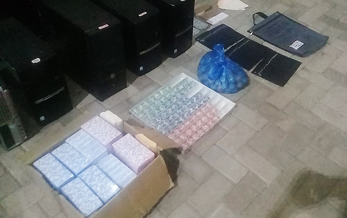 No local foram apreendidos 30 monitores de computador; 7 TVs de LED; 6 CPUs de computadores; 1 máquina “bolinheira” para sorteio dos números; 1 microfone com amplificador; 102 mil cartelas de bingo; 2 mil cartões de visita; 4 malotes vazios para armazenar dinheiro; 6 cartões de pontos preenchidos por possíveis funcionários; 100 cartões de pontos em branco; 10 carnês de senhas; R$ 102,05 em moedas.