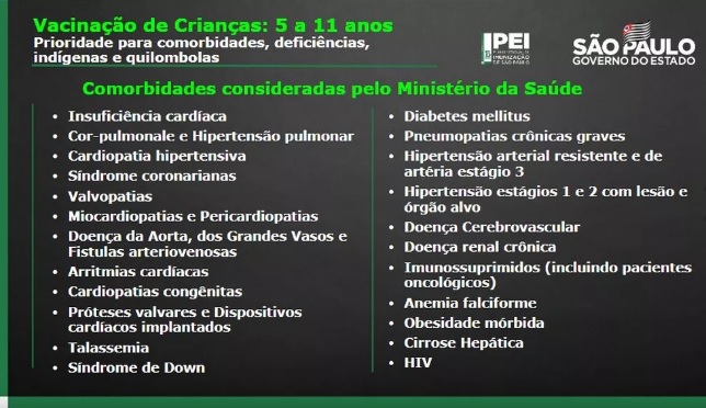 A VEM salientou que, conforme orientação do Ministério da Saúde, a campanha priorizará neste primeiro grupo as crianças com comorbidades, deficiências, indígenas e quilombolas.