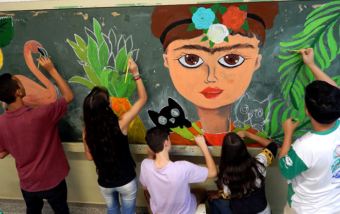 “Nossa preocupação era com a preservação do patrimônio público. Propusemos, então, que esses espaços fossem transformados em “obras de arte”. As lousas, mesas e até paredes que antes abrigavam rabiscos deram lugar a imensas pinturas com temas e assuntos trabalhados em todas as disciplinas”, conta o professor.