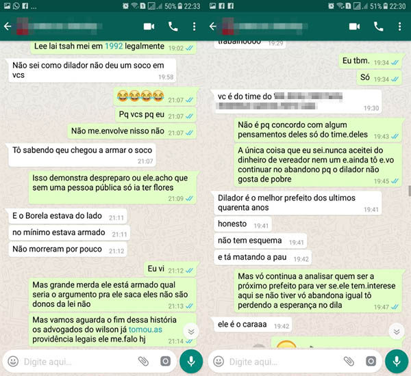 1 - A administração municipal tem conhecimento desse diálogo que circula pela rede social Whatsapp?