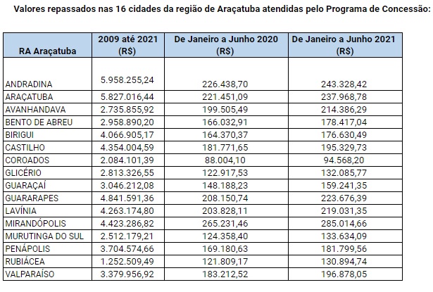 No primeiro semestre deste ano, 16 prefeituras da região de Araçatuba foram beneficiadas com mais de R$ 3 milhões em repasses provenientes do ISS-QN (Imposto Sobre Serviço de Qualquer Natureza), de acordo com balanço da Artesp (Agência de Transporte do Estado de São Paulo).