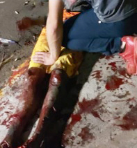 Homem com 38 anos: baleado nas pernas, braços e cabeça (raspão). Precisou ser entubado. Quadro clinico grave, e nesse momento está no centro cirúrgico como comprometimento de ombro e braço e com uma artéria rompida.