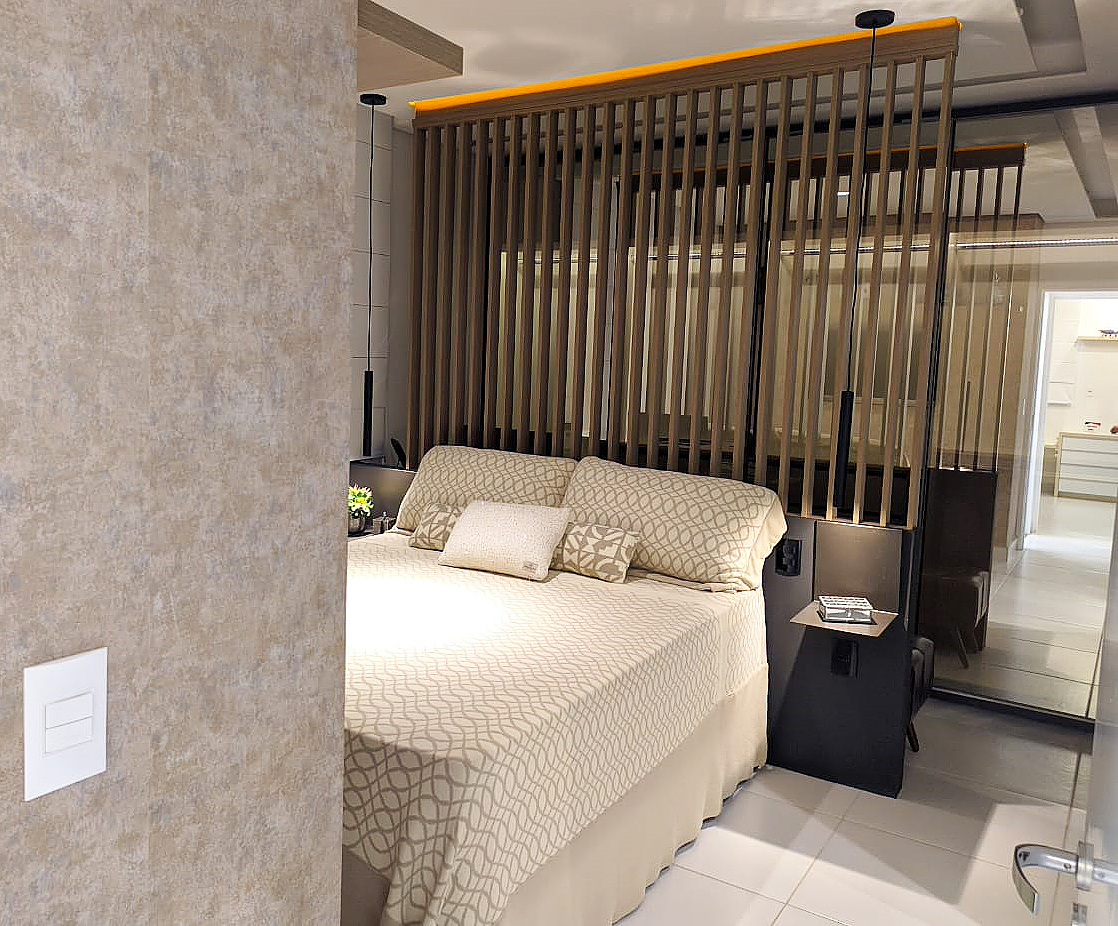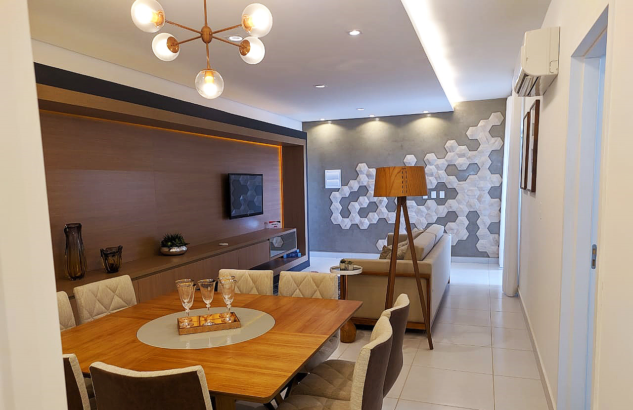 Hoje, nós temos aqui na cidade de Araçatuba quatro empreendimentos residenciais e um comercial, mais um empreendimento em Guararapes e um em Pereira Barreto. Um total de sete empreendimentos em andamento. Hoje o foco da construtora são os produtos residenciais de médio e popular padrões. O nosso diferencial continua sendo as questões de metragem e custo-benefício. A questão sustentável sempre foi um diferencial, mas o principal mesmo sempre foi o custo-benefício da nossa metragem. Se você perceber, os prédios da Tecnobens por fora são muito parecidos, similares. A gente não investe tanto em fachadas muito rebuscadas, cheias de vidro e recortes que encarecem tanto o preço final. Nós entendemos que de fato o cliente mora dentro do apartamento. Então, as nossas plantas, são as plantas mais retas e mais bem divididas do mercado – quando você entra não tem aquelas salas em “L”, recortadas e que você não aproveita o espaço. Todo cliente que entra em uma sala nossa, que é uma sala longínqua, aquela que lembra a de casa, ele se sente aconchegado, não sente aquela dificuldade de mudar de uma casa para o apartamento. E nossa filosofia sempre foi esta: entender que o cliente está saindo de uma casa e indo para um apartamento.