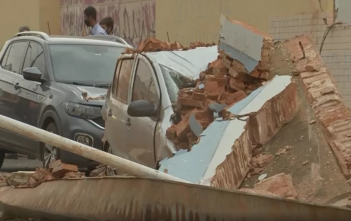 Parte do muro de uma empresa desativada também desmoronou, atingindo três carros que estavam estacionados. Não houve registro de feridos, porque não havia ninguém dentro dos veículos.
