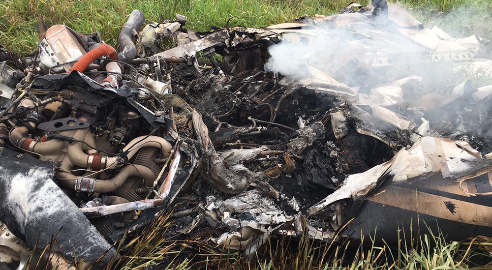 O Corpo de Bombeiros da cidade onde ocorreu a tragédia foi acionado por moradores da região às 11h47. Quando chegaram ao local do acidente, encontraram destroços da aeronave em chamas e seus passageiros já sem vida.