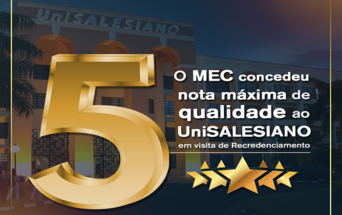 O MEC deu ao Unisalesiano de Araçatuba a nota máxima: 5. Esse conceito, que vai de 1 a 5, coloca o centro universitário entre as 50 melhores Instituições Universitárias do Brasil.