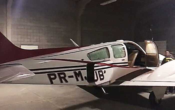 Trata-se de um avião modelo Beech Aircraft, prefixo PR-MJB, fabricado em 1982, com capacidade para o transporte aéreo de seis pessoas, incluindo o piloto. De acordo com a PF, o fato de a aeronave ter sido encontrada com bancos retirados de seus locais e origem ou deitados indica que a estrutura interna do avião, que tem condições e autorização para realização de voos noturnos, possa ter sido alterada para acomodar a maior quantidade de drogas possível.