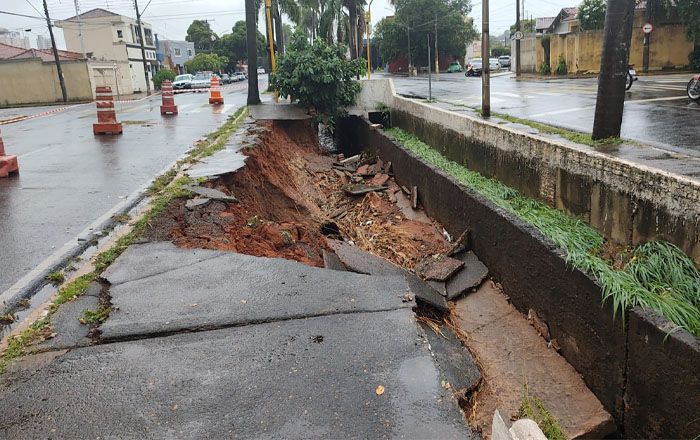 Chuva em Araçatuba causa queda de muro no canal da João Arruda Brasil