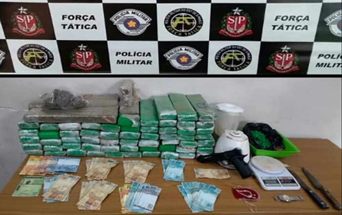 Ocorrência foi no bairro Alvorada em Araçatuba, onde a polícia localizou mais de 50 quilos da droga e mais de R$ 7 mil em dinheiro