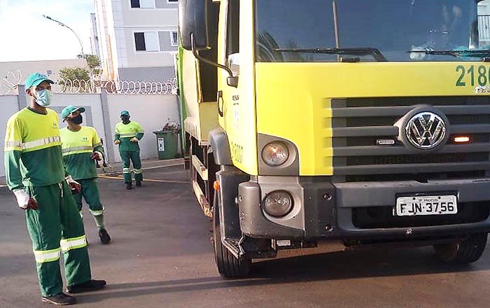 Marcação e pulverização de desinfetante ajudam trabalhadores a tomarem cuidado na hora da coleta