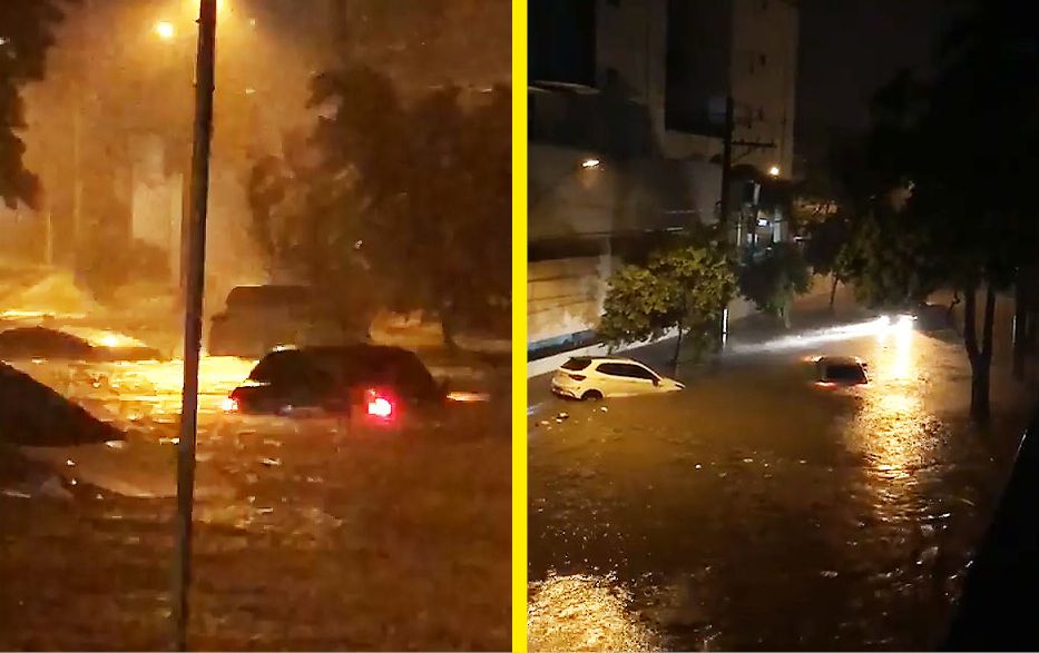 VEJAM VÍDEOS: TEMPORAL ALAGA VIAS, DERRUBA ÁRVORES E ARRASTA CARROS