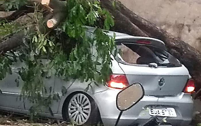 Chuva e ventania derrubam árvores sobre veículos em Birigui